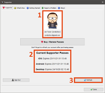 - If you run into a problem, we can use your email address to look up your account and associated supporter passes and purchase records.