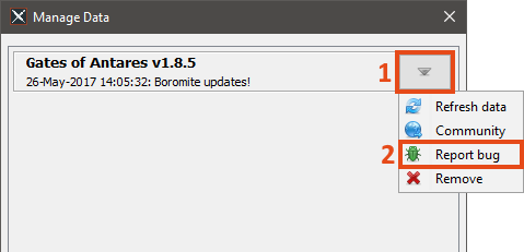 Click the menu button next to the data repository in question then click Report bug in the menu.