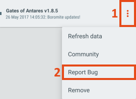 Tap the menu button next to the data repository in question then tap Report bug in the menu.